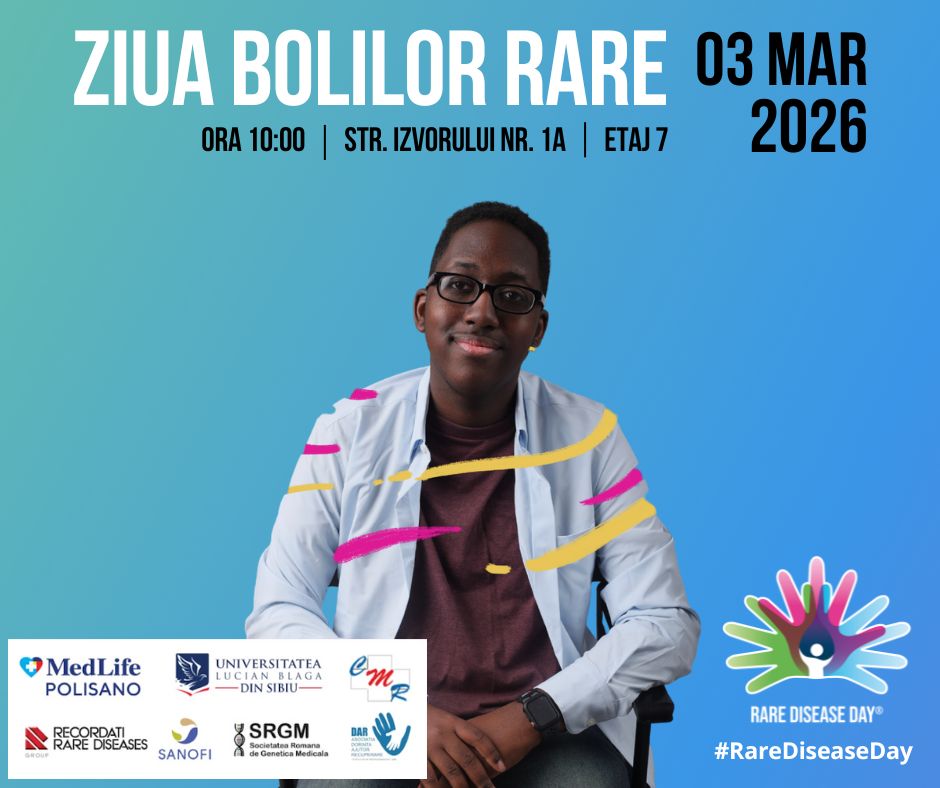 Acasa Ziua Bolilor Rare 2026 Conferință organizată sub egida Universității Lucian Blaga din Sibiu și a Societății române de genetică medicală SIBIU 03.03.2026Ora 10 – SALA DE CONFERINTE ,ET.7, CLINICA MEDLIFE POLISANO COMUNICAT PROGRAM